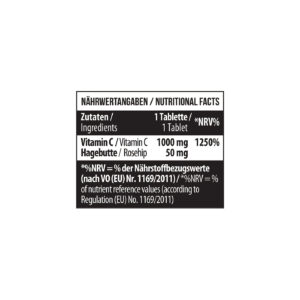Вітамін С, сприяє зміцненню імунної системи, збільшує опірність організму різним захворюванням, підвищує активність лейкоцитів і має потужні антиоксидантні властивості, тим самим захищаючи клітини від пошкоджень, нейтралізуючі вільні радикали, які завдають шкоди стінкам артерій. У цьому продукті цей компонент посилений екстрактом з плодів шипшини. У такому вигляді вміст корисних речовин є найвищим. Плоди шипшини містять у собі вітаміни групи В, Р, С та Е (токофероли), дубильні та органічні речовини, пектини. Вони покращують засвоєння організмом вітаміну С. Крім того, посилюють захист від вільних радикалів, сприяють оптимізації вмісту колагену, а також надають суттєву зміцнюючу дію на капілярну систему. У природі біофлавоноїди пов’язані з вітаміном і знаходяться в овочах, фруктах та травах.