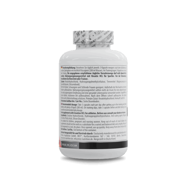 MST® Creatine HCL Креатин Гідрохлорид 300 капсул сприяє збільшенню маси тіла та сили м’язів, його застосування лежить в основі покращення результатів тренувань високої інтенсивності. Креатин є органічною сполукою, що належить до групи карбонових кислот. Ця азотовмісна кислота синтезується в організмі людини і міститься у ряді тканин, насамперед – у м’язах. Завдання креатину зводиться до підтримки енергетичного балансу, зокрема – усередині м’язових структур та клітин нервової системи. У медицині креатин використовують під час лікування патологій, що з атрофією м’язів.